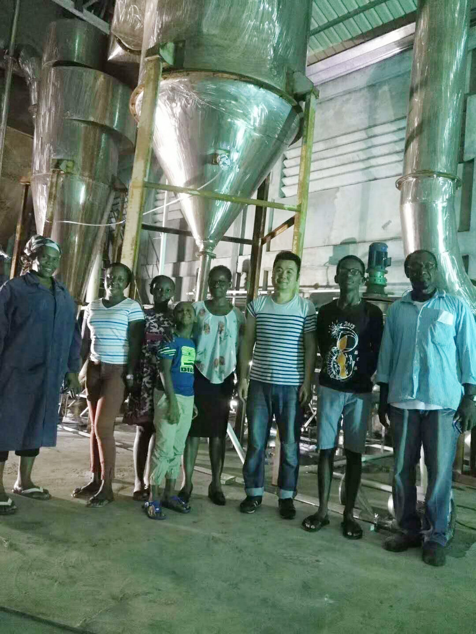 湖南富達(dá)日化高塔噴霧洗衣粉設(shè)備在南美國(guó)家成功投產(chǎn),老外贊嘆不已,下午,工程師回國(guó)前和南美用戶開心留影。