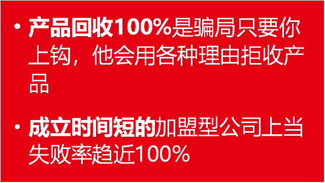 十五、項目加盟騙局一般都會同時推出幾個放馬牛不相及的項目,因為不專一導致專業(yè)性差;