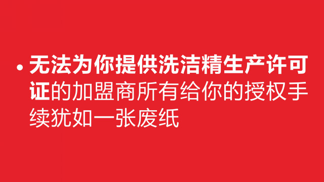 十六、加盟騙局實施者都會虛構洗潔精洗衣液成本僅1元以下,實際上國標活性物15%的成本每斤不低于1元,1元以下的的都是不達標用于銷售到酒店賓館的散裝產品;