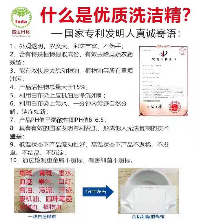多項(xiàng)專(zhuān)利發(fā)明人王先軍 手機(jī):150-7483-5702 手機(jī):195-7316-0288什么是優(yōu)質(zhì)的日化產(chǎn)品,進(jìn)來(lái)小編帶您了解洗潔精,洗衣液,油污凈