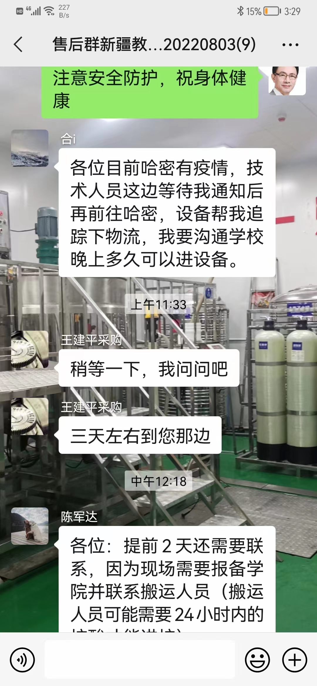 好事多磨,發(fā)往新疆大學(xué)系列日化設(shè)備因為疫情無法正常安裝,期待疫情早日遠(yuǎn)去!