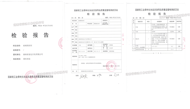 富達(dá)日化生產(chǎn)的玻璃水設(shè)備,主要包含水處理設(shè)備、水計(jì)量設(shè)備、反應(yīng)釜、灌裝機(jī)等組成符合生產(chǎn)國(guó)家標(biāo)準(zhǔn)的玻璃水。為用戶(hù)提供中、高、低檔玻璃水配方,提供包裝、原料、辦廠證件,聯(lián)營(yíng)辦廠,讓您銷(xiāo)售無(wú)憂。2017年2月,由公司自主研發(fā)的玻璃水配方生產(chǎn)的相思竹玻璃清洗劑送到國(guó)家輕工業(yè)香料化妝品洗滌用品質(zhì)量監(jiān)督檢測(cè)武漢站檢測(cè),根據(jù)GB9985—2000 QB/T 4086-2010《玻璃清洗劑》等檢測(cè)依據(jù),送檢的產(chǎn)品符合標(biāo)準(zhǔn)要求。