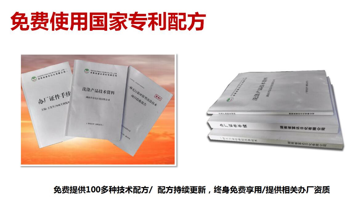 多項(xiàng)專利發(fā)明人王先軍 手機(jī):150-7483-5702 手機(jī):195-7316-0288洗潔精是日常生活中人人要用,天天要用,家家必用的日常高消耗品。 加盟生產(chǎn)洗潔精在家創(chuàng)業(yè),投資少,利潤高,是一個回家創(chuàng)業(yè)好項(xiàng)目。做為家庭辦廠設(shè)備投資小,操作簡單,容易上手,是小本創(chuàng)業(yè)的首選好項(xiàng)目。