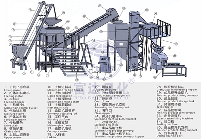 Fuda daily chemical washing powder equipment won the national patent of washing powder in China on May 25, 1995, the national invention patent of "phosphorus free expanded washing powder chelator and production method" on July 30, 2003, and the national invention patent of "a phosphorus free and boron free granular washing powder produced by slurry shear inflation process" on December 22, 2006. The project is listed as a high-tech project by the Provincial Department of science and technology, the Ministry of science and technology and Changsha Science and Technology Bureau.