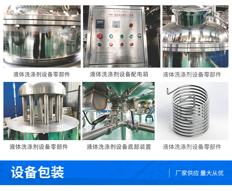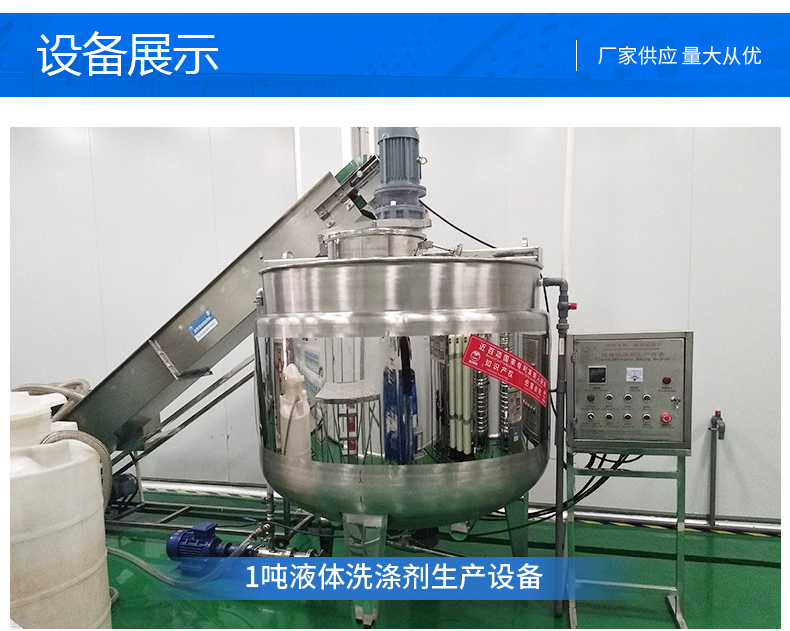 設(shè)備多功能:能一機(jī)多用生產(chǎn)洗潔精,84消毒液,洗衣液,洗發(fā)水,沐浴露等100多種液態(tài)洗滌產(chǎn)品 |